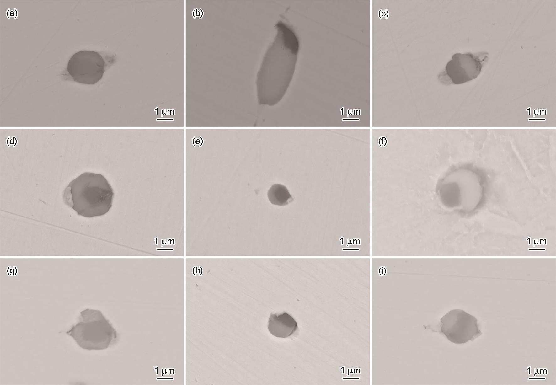 Fig.2 SEM morphologies of original inclusions in EH690 steel: (a-c) sample 1#, (d-f) sample 2#, (g-i) sample 3# |