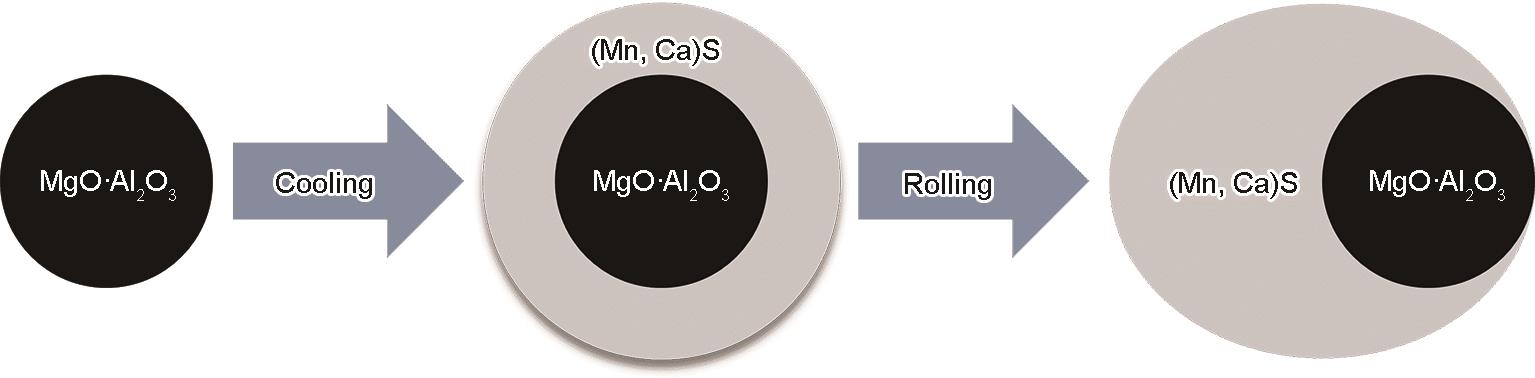 Fig.4 Schematic diagram of formation of composite inclusion in EH690 steel |