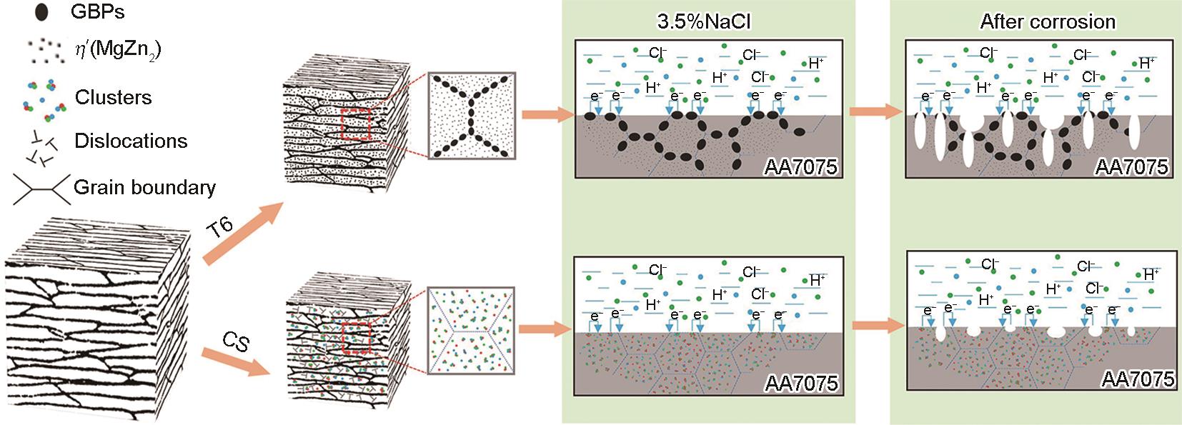| 图12 T6、CS处理的7075铝合金的腐蚀机理模型 |