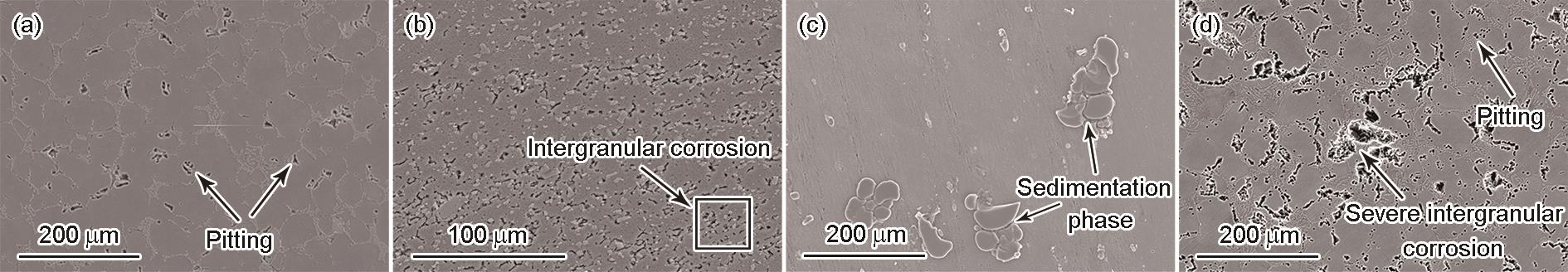| Fig.9 Micro-morphologies of the TMAZ of welded joint after intergranular corrosion for 1 h (a), 2 h (b), 4 h (c) and 6 h (d) |