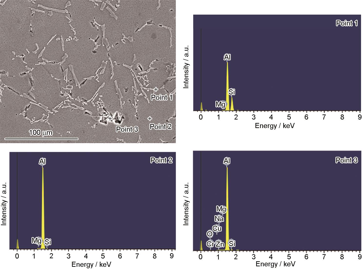 | Fig.11 EDS analysis results of the marked points for the welded joint after intergranular corrosion for 4 h |