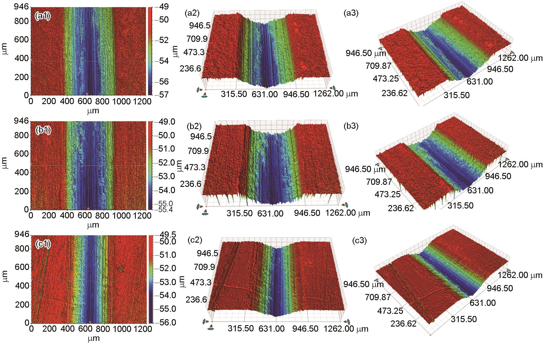 图4 OCP下磨蚀后磨痕的平面及三维形貌 |