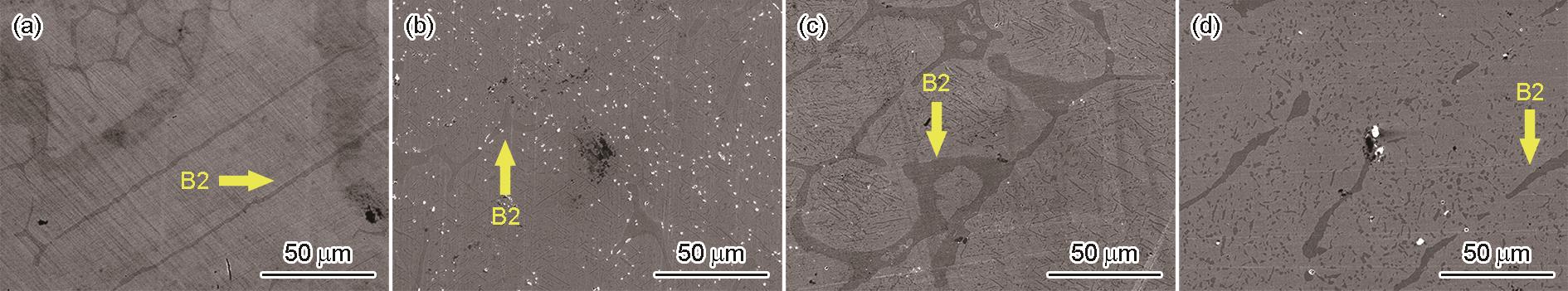 图14 铸态和轧制后不同温度热处理态合金在0.5 mol/L NaOH溶液中腐蚀后的SEM图 |