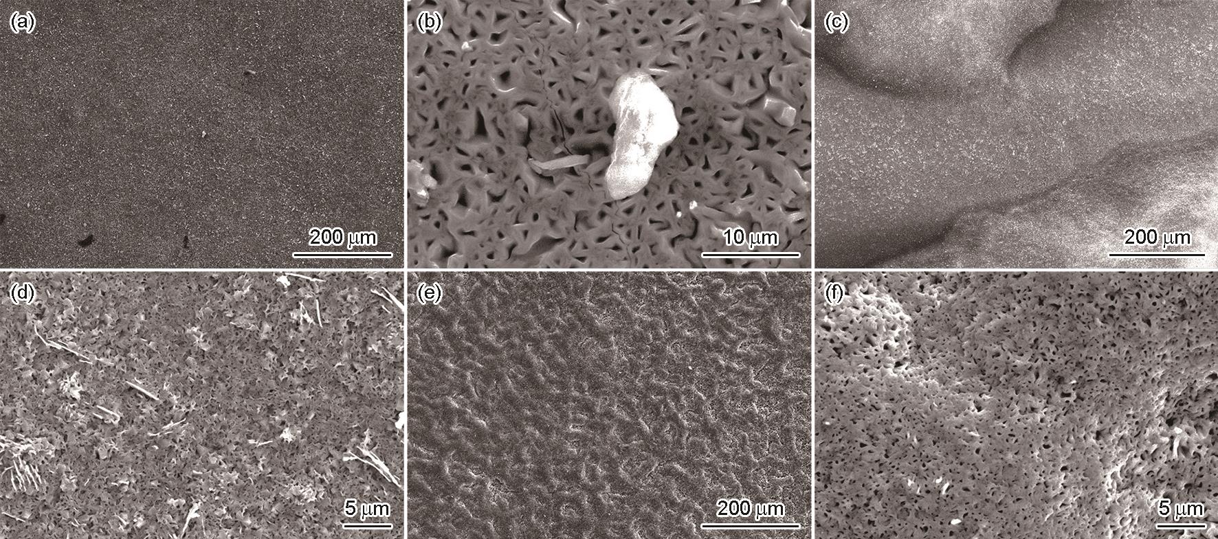 | Fig.6 SEM surface morphologies of F92 steel oxidized in SCW at 600 ℃ for 100 h (a, b), 1000 h (c, d) and 3000 h (e, f) |