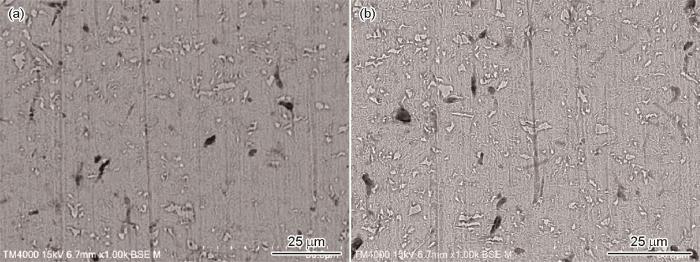 采用Gammy Interface 1010E电化学工作站来进行电化学阻抗谱(EIS)测试,用于电化学测试的三电极系统由样品作为工作电极,饱和甘汞电极作为参比电极,铂板电极作为对电极组成。测试溶液采用灭菌培养基,测试周期为14 d。样品在培养基中浸泡14 d后,按照ASTM G1-2003标准去除腐蚀产物。通过称重测试开始和结束时样品质量的差值来计算腐蚀速率,腐蚀速率计算公式为:Vcorr = (87600Δm)/ρAt,Vcorr、t、ρ、A和Δm分别代表腐蚀速率(mm/a),浸泡时间(h),材料密度(g/cm3),暴露面积(cm2)和质量损失(g)。