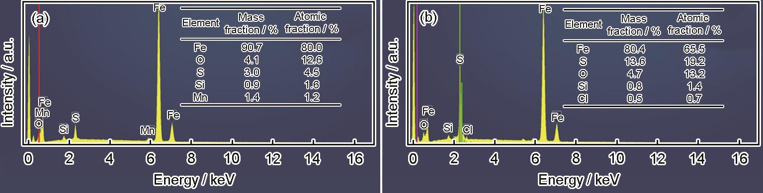 | Fig.6 EDS results of Cs (a) and Ms (b) after immersion in biotic medium for 14 d |