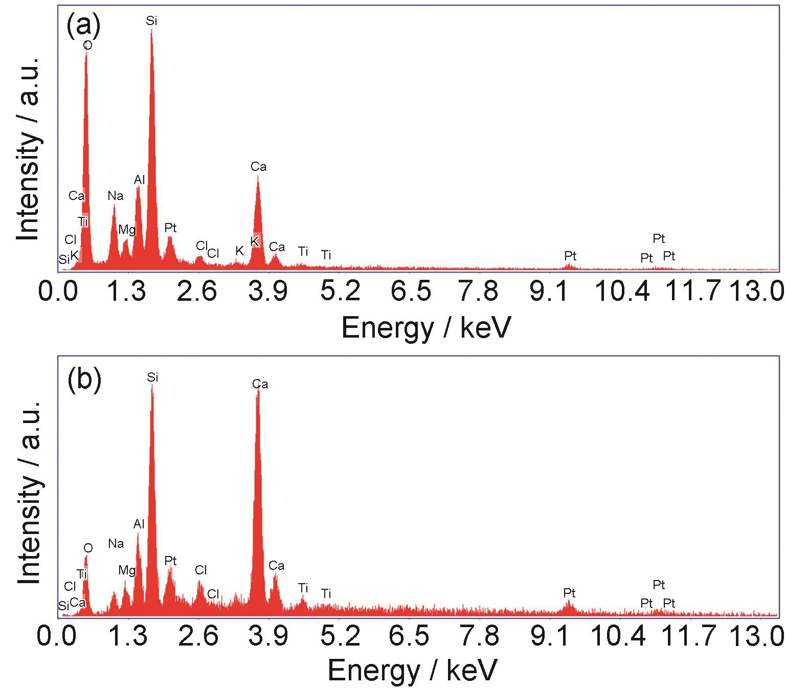 | Fig.5 EDS results of typical regions marked as spot 30 (a) and spot 32 (b) in Fig.4 |