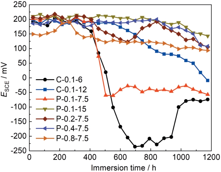 | 图6 各种所制备的Ag/AgCl电极在砂浆中的电位变化 |