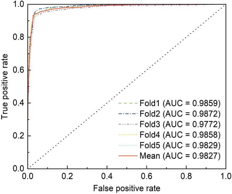 图9 SPPSS-RSPP架构的五折交叉验证ROC性能 |
