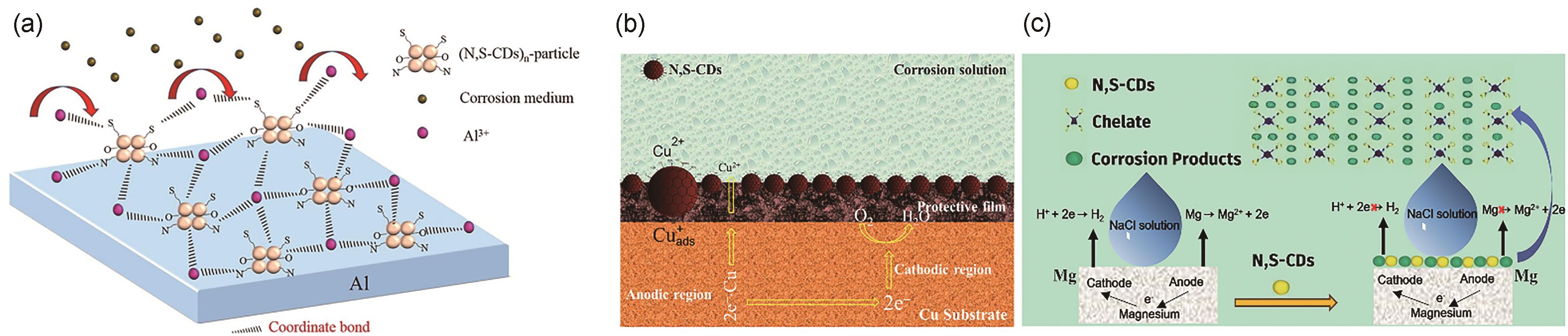 | 图6 N,S-CDs对Al、Cu和Mg的缓蚀机理图[ |