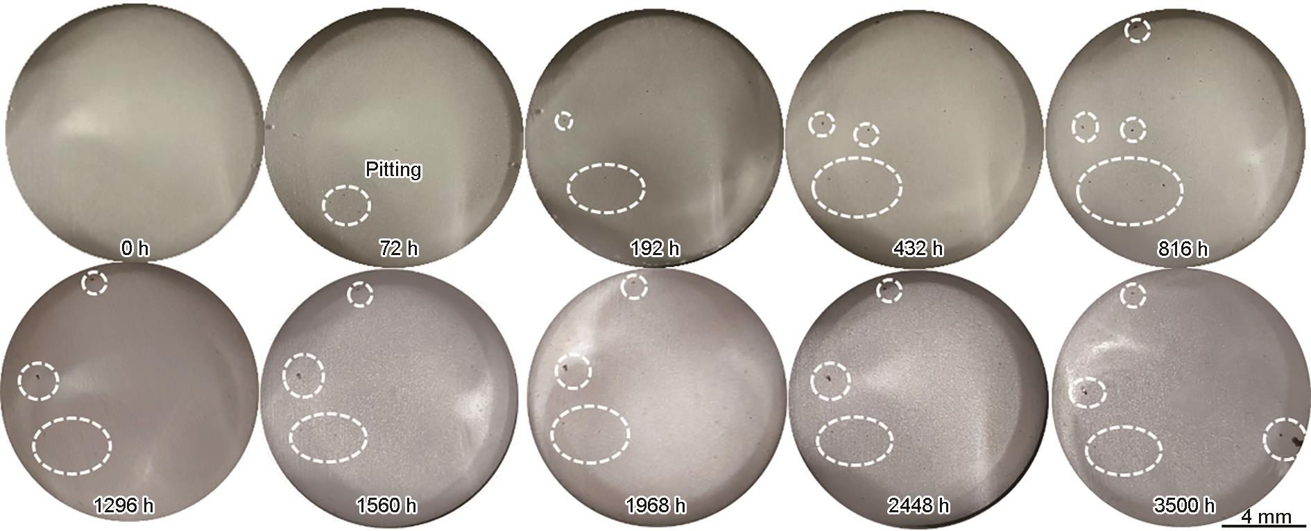 | 图12 涂覆涂层的LY12铝合金浸泡3500 h过程中的宏观形貌演变 |