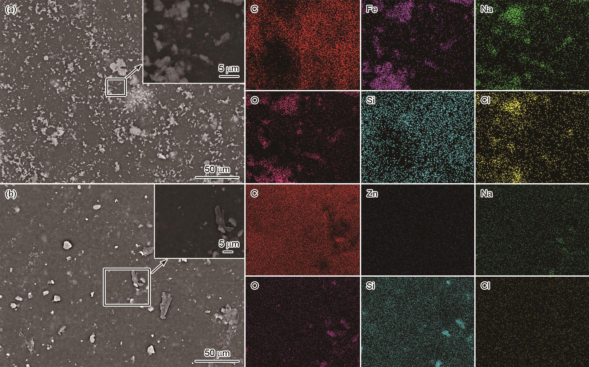 | Fig.15 Elemental distribution of epoxy-coated 10# steel (a) and LY12 Al-alloy (b) after immersion for 3500 h |