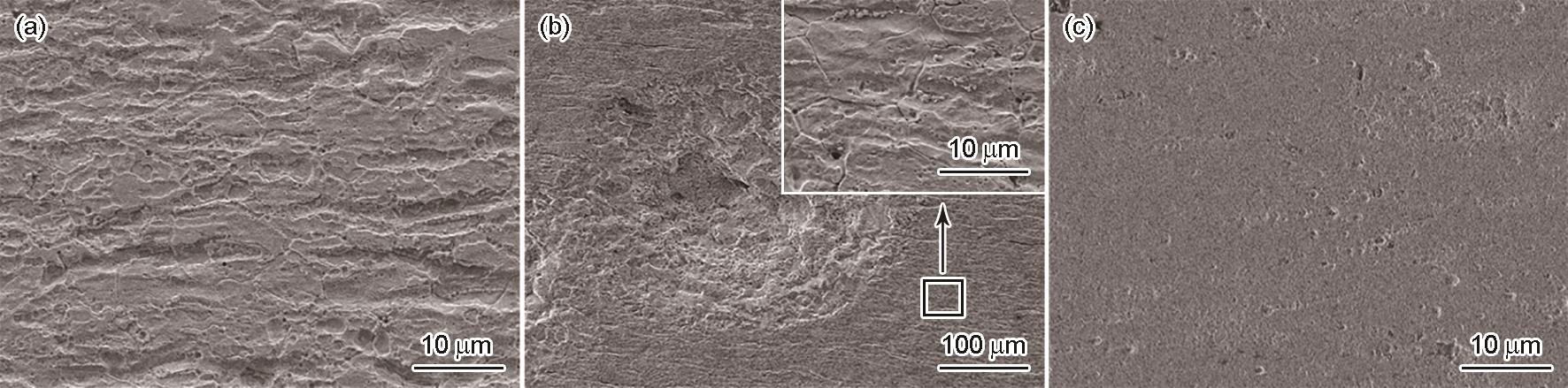 | Fig.2 Surface morphologies of A sample (a), B sample (b) and C sample (c) immersed in seawater for 60 d after removal of the corrosion product films |