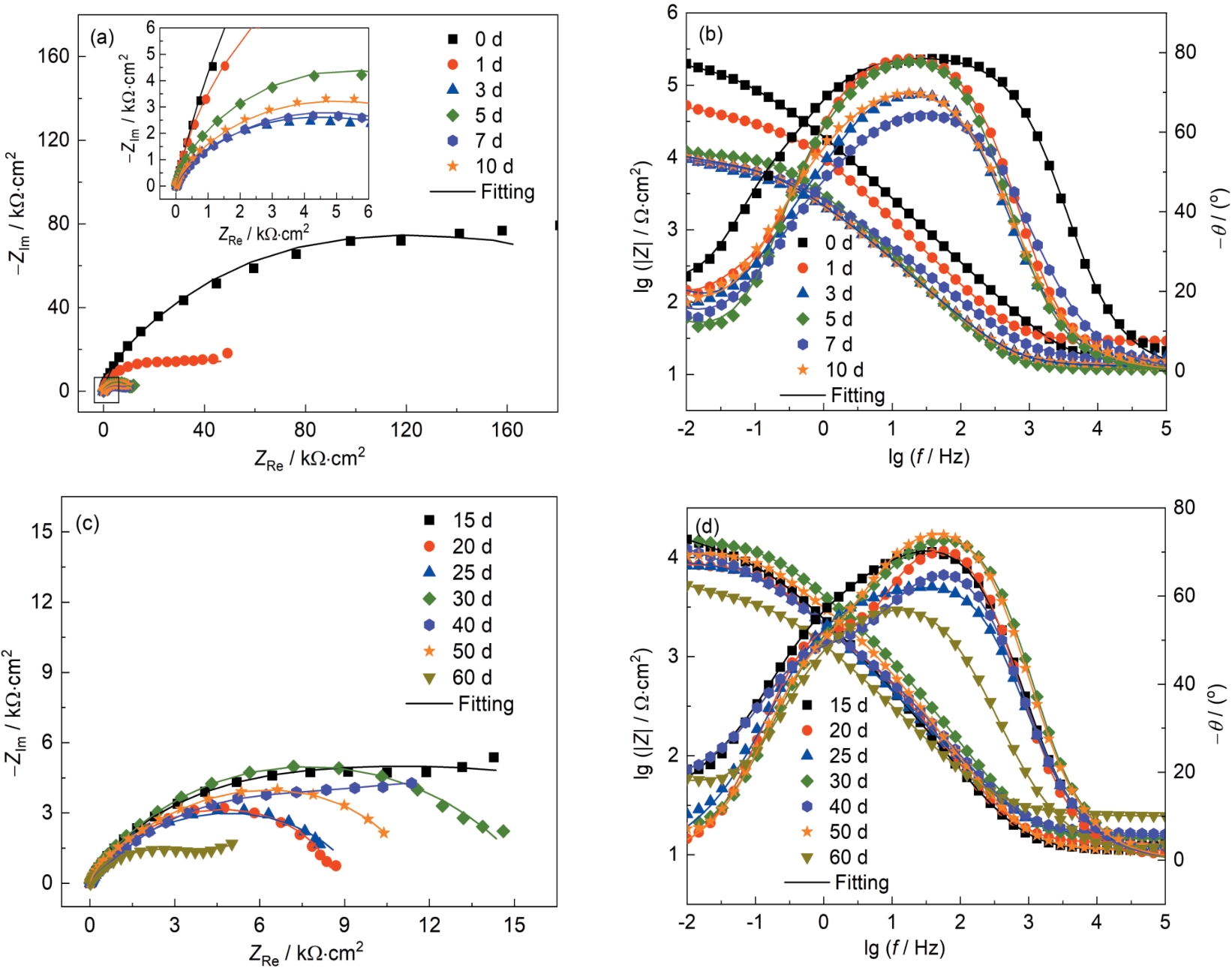 | Fig.7 Nyquist (a, c) and Bode (b, d) plots of B sample immersed in seawater for 60 d |
