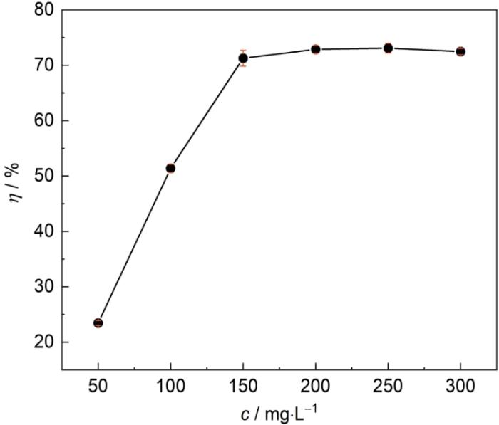 | c / mg·L-1 | Rs / Ω·cm2 | Rct / Ω·cm2 | CPEdl / μF·cm-2 | χ2 | η / % |