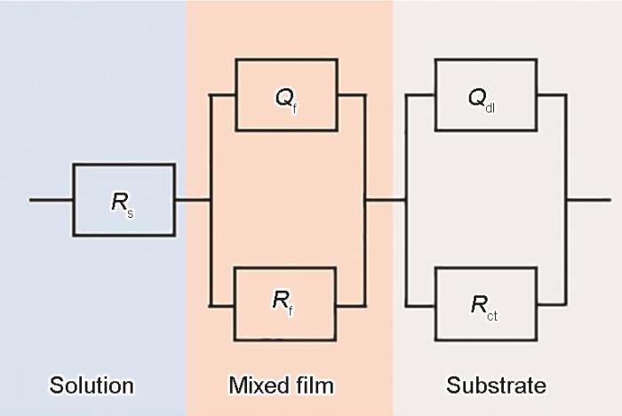 ... 开始测试时,首先进行开路电位测量,等待电路稳定后,利用电化学阻抗谱(EIS)在实验的第14 d(SRB数量稳定阶段)检测各个试样表面的电化学信号变化[36],然后进行动电位极化曲线(PC)测试分析.在整个实验过程中,保持隔绝氧气,同样在实验前对所有涉及实验的器材进行了灭菌处理.电化学实验的参数设置为:电化学阻抗谱测试频率范围为105~10-2 Hz,用5 mV的正弦扰动信号进行测量,实验结束后使用Zview、ZsimpWin对实验数据进行拟合;动电位极化曲线的扫描范围为-300~500 mV相对于开路电位(vs. OCP),扫描速率设置为1 mV/s[37]. ...