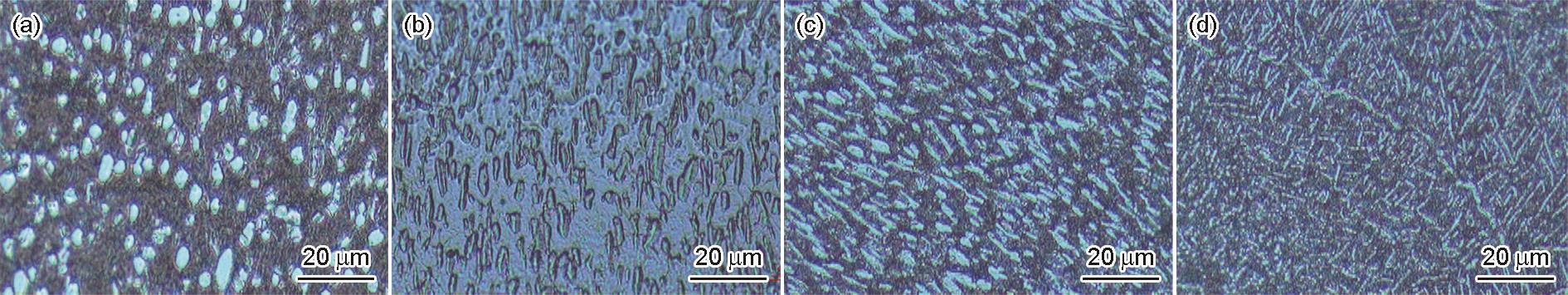 | Fig.1 Metallographic structures of TC18 Ti-alloy (a), TC18-0.5Cu (ST800) alloy (b), TC18-0.5Cu (ST800AG580) alloy (c) and TC18-0.5Cu (ST800AG620) alloy (d) |