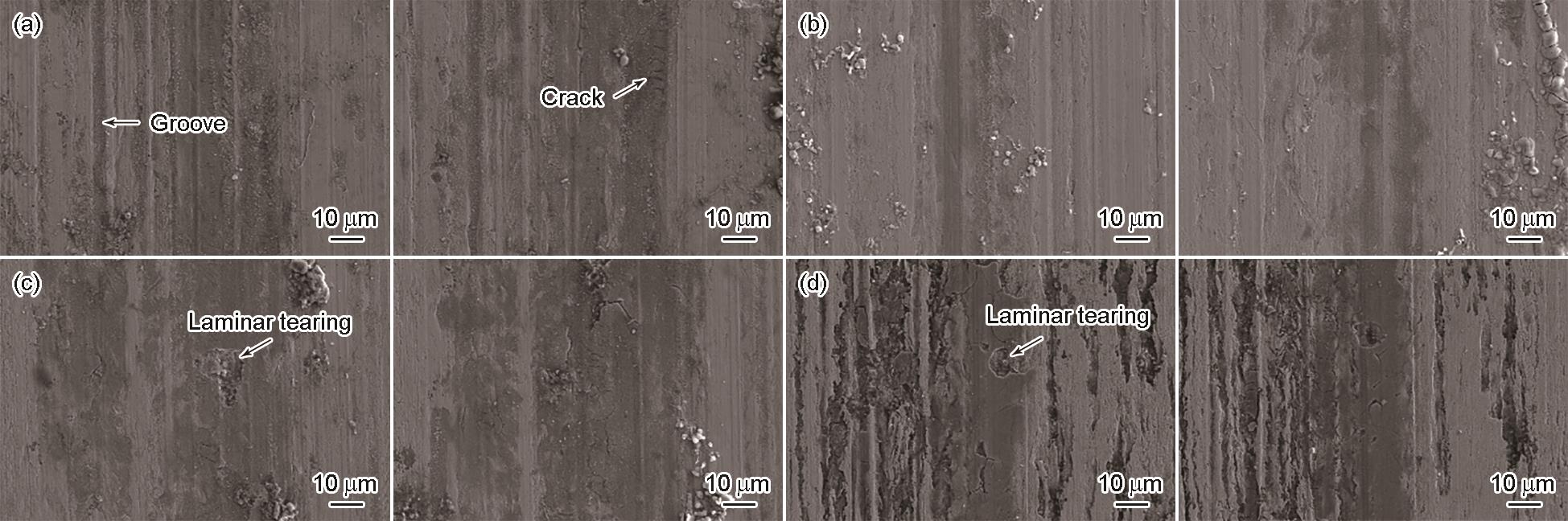 | 图9 2种FH40钢样在有、无保护电位下摩擦后磨痕形貌 |