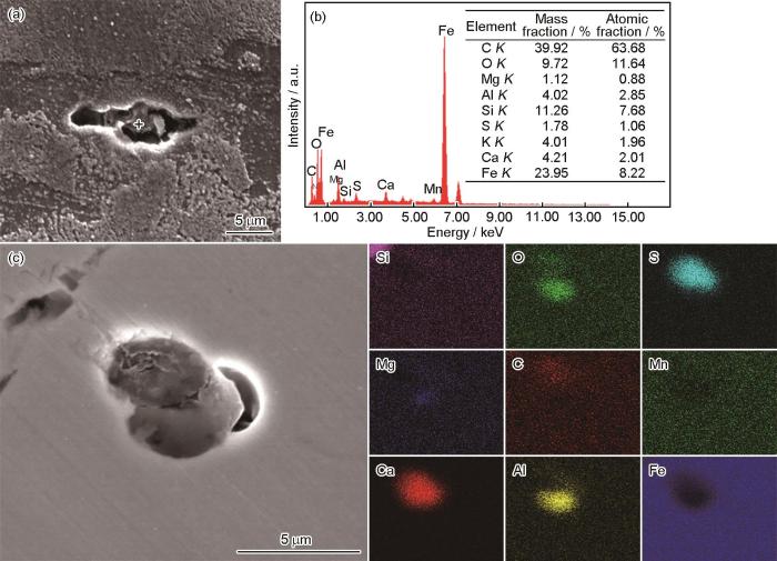 SEM image (a), corresponding EDS spectra (b) and element mappings (c) of composite inclusion of N80 tubing steel