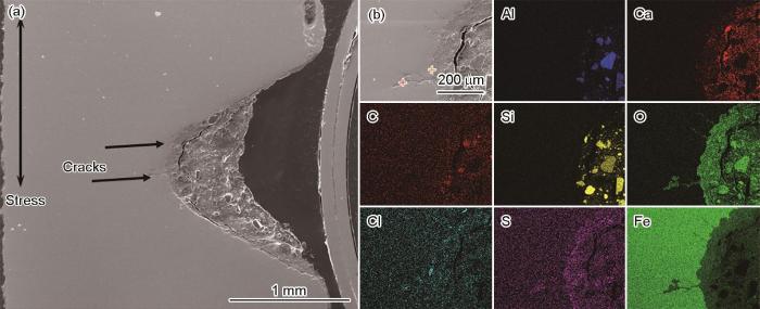 (3) 失效过程中裂纹扩展主要以穿晶应力腐蚀开裂为主,而Cl-和硫化物富集在裂纹尖端、裂纹表面和点蚀坑底部,为裂纹萌生和扩展提供了驱动力。