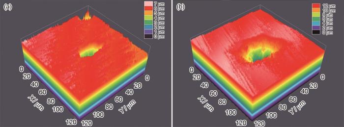 Surface maximum pitting morphologies of MIC resistant steel (a) and ordinary steel (b) after 14 d immersion in SRB inoculation solution