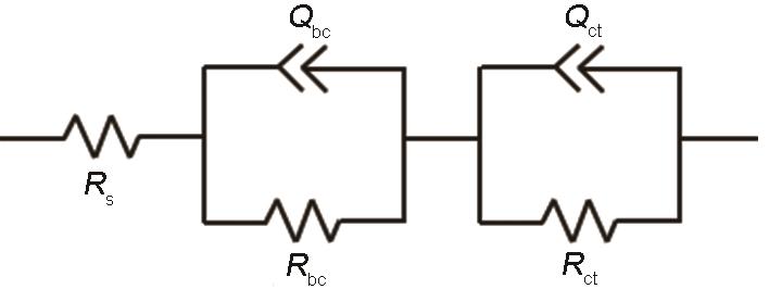 | Fig.9 Equivalent circuit model used to fit EIS data (Rs-solution resistance, Qbc-biofilm and corrosion product layer capacitance, Rbc-biofilm and corrosion product layer resistance, Qct-interface double-layer capacitance, Rct-metal surface charge transfer resistance) |