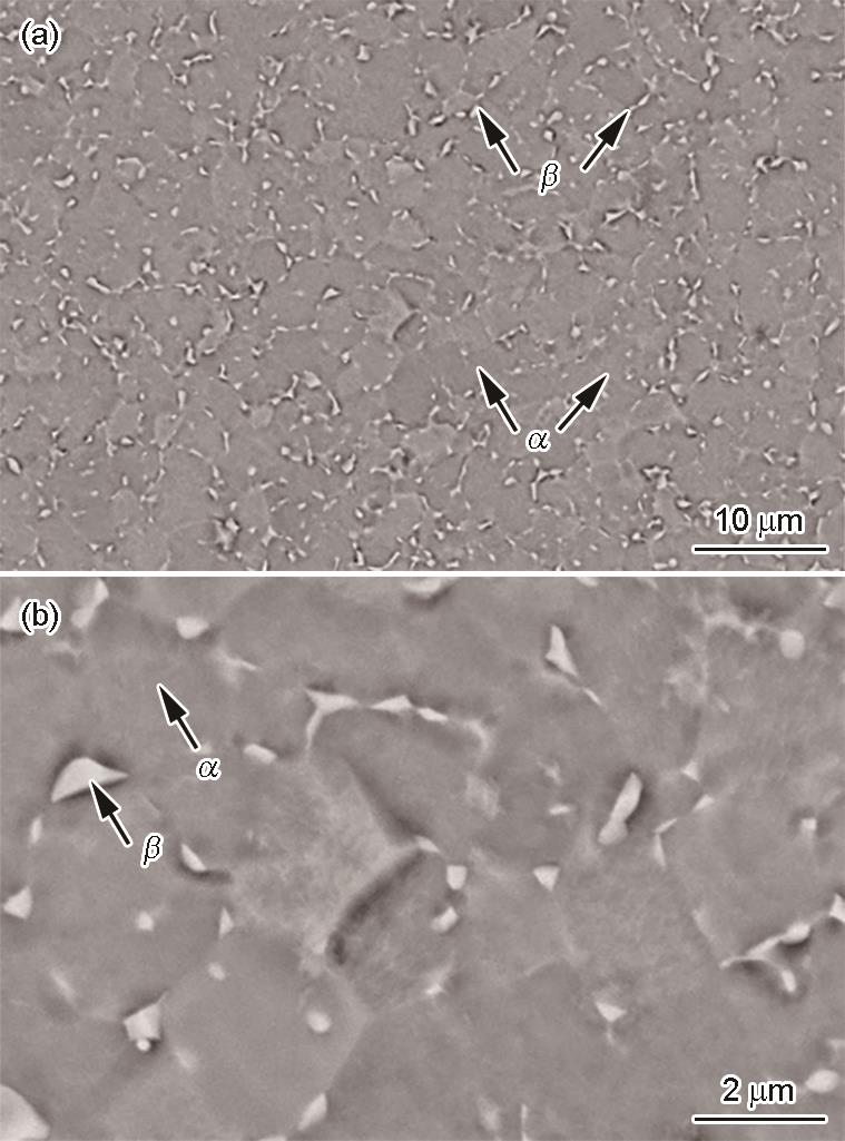 | Fig.1 SEM image (a) and enlarged image (b) of microstructure of TC4 Ti-alloy |