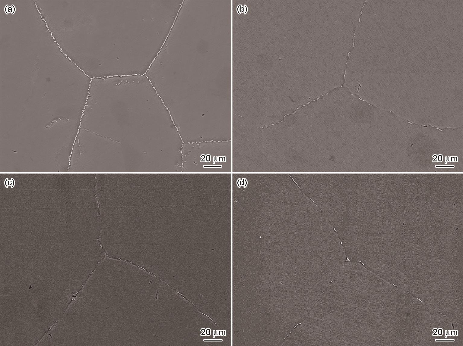 | Fig.2 Microstructures of S31254 steel after isothermal treatment at 300 oC for 0 min (a), 20 min (b), 40 min (c), 60 min (d) and then aging at 900 oC for 2 h |