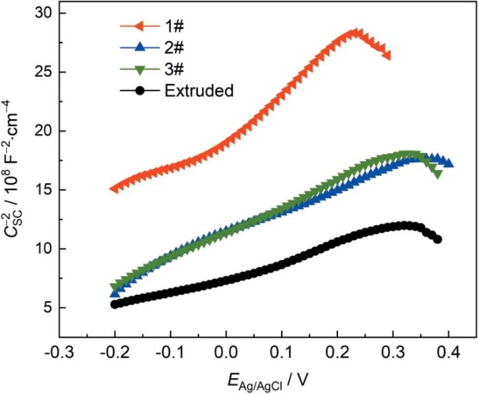 17-4PH不锈钢在3.5%NaCl溶液中的Mott-Schottky曲线
