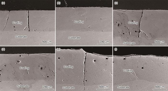 (1) 当功率为2000~4500 W时涂层均存在裂纹缺陷,但数量和尺寸无显著差异,涂层与基体之间均有良好的冶金结合。随着功率的增大,涂层的厚度增加,各元素在涂层中均匀分布。激光功率为2000 W时涂层的主要成分为ZrO2、TiO2、SiO2以及亚稳态Mo5Si3相;功率为3000 W时涂层中成分主要为ZrO2、SiO2、TiO2以及Ti5Si3;4500 W时涂层的成分主要是ZrO2、TiO2和SiO2。