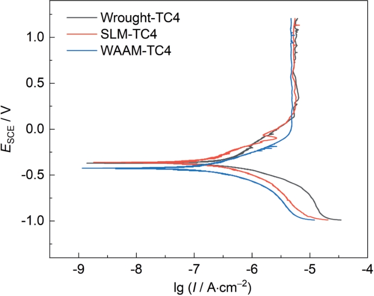 | 图4 SLM、WAAM和传统TC4钛合金的动电位极化曲线 |