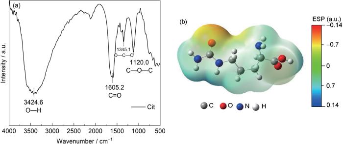FTIR spectrum (a) and electrostatic potential diagram (b) of Cit