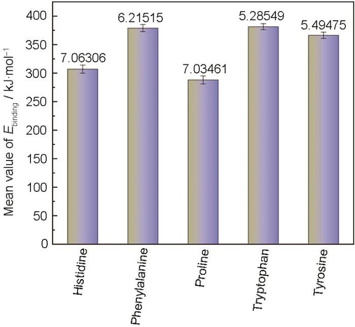 组氨酸、苯丙氨酸、脯氨酸、色氨酸以及酪氨酸在Fe(110)表面吸附前、后构像