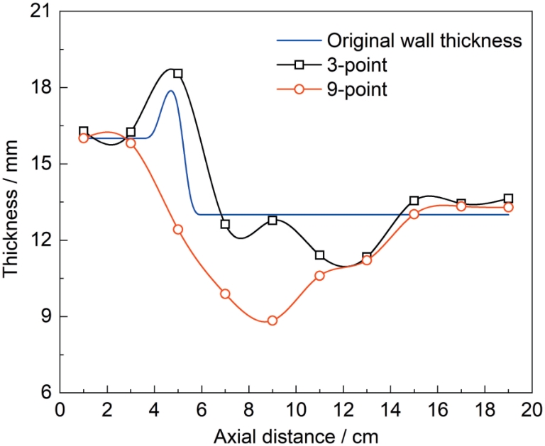 | Fig.3 Wall thickness variation curve at different positions of the valve wall |