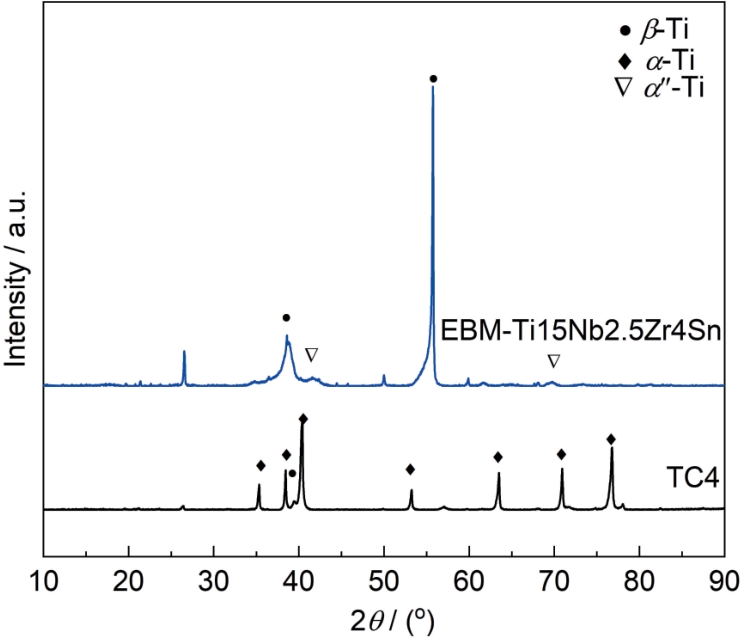 | Fig.3 XRD patterns of EBM-Ti15Nb2.5Zr4Sn and TC4 Ti-alloys |